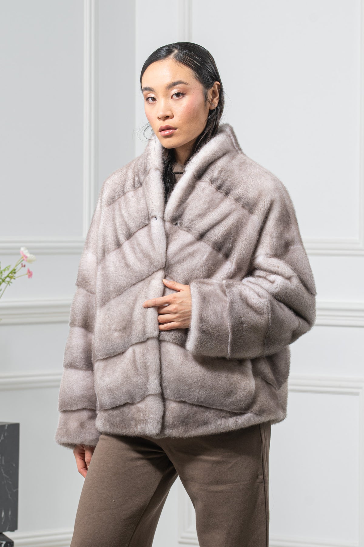 Indulge in unparalleled sophistication with our exquisite Silver Blue Velvet Mink Fur Short Jacket. This luxurious women's fur jacket is meticulously crafted to elevate your winter wardrobe with supreme warmth and timeless elegance.