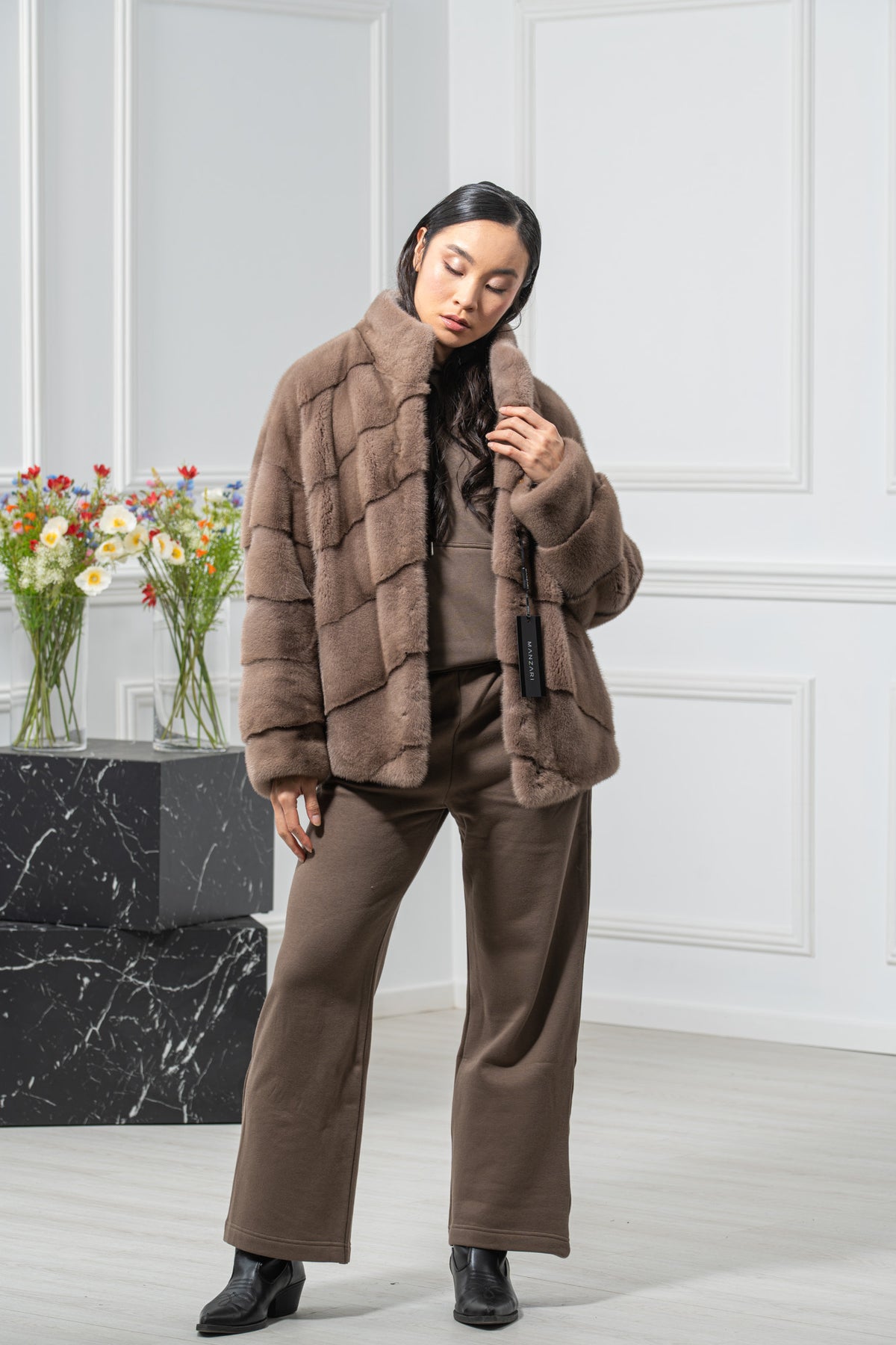 Taupe Mink Fur Short Jacket - Women's Velvet Short Jacket A/K 25M5496