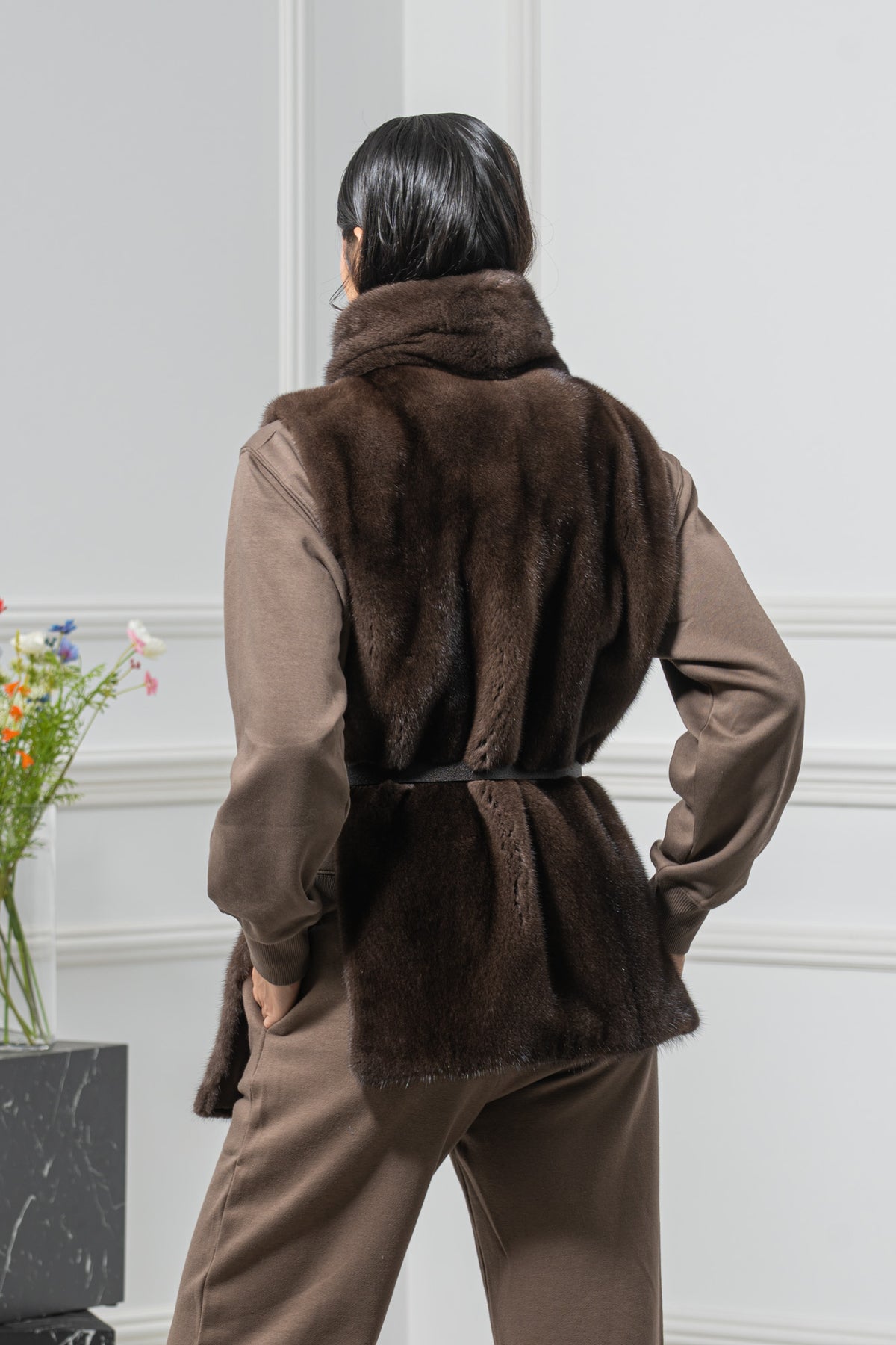 Mahogany Mink Fur Vest - Women's Velvet Vest L/O 24M4136