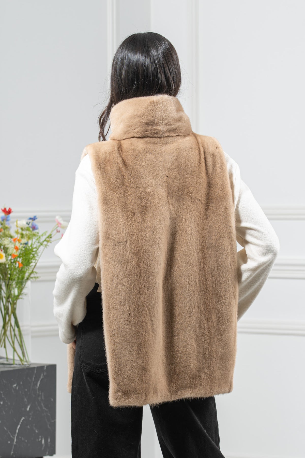 Experience the sumptuous softness of premium Velvet Mink Fur in a stunning Palomino hue, offering a naturally radiant and versatile shade. This women's fur vest is expertly tailored to provide a chic, modern silhouette that layers beautifully over your favorite ensembles, making it perfect for both upscale daytime events and glamorous evening wear. Its lightweight yet warm design ensures comfort without compromising on luxury.