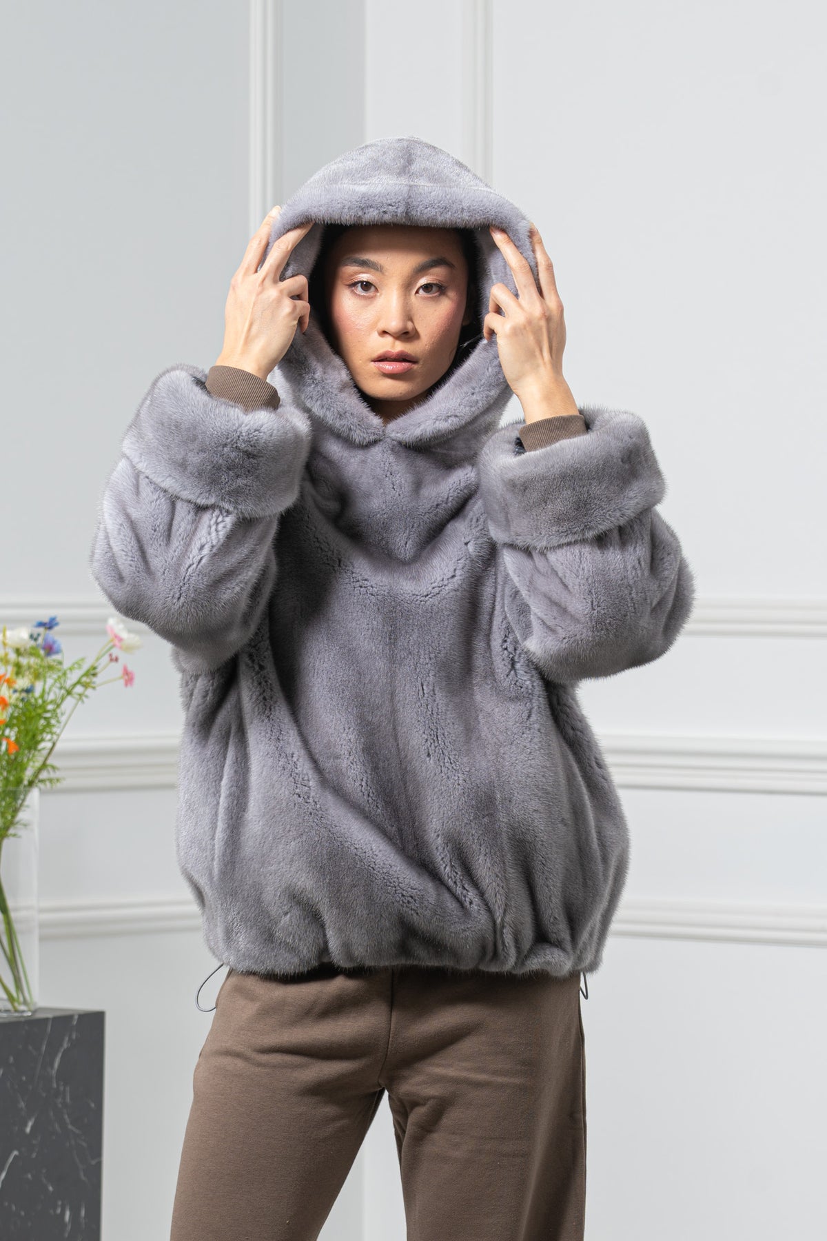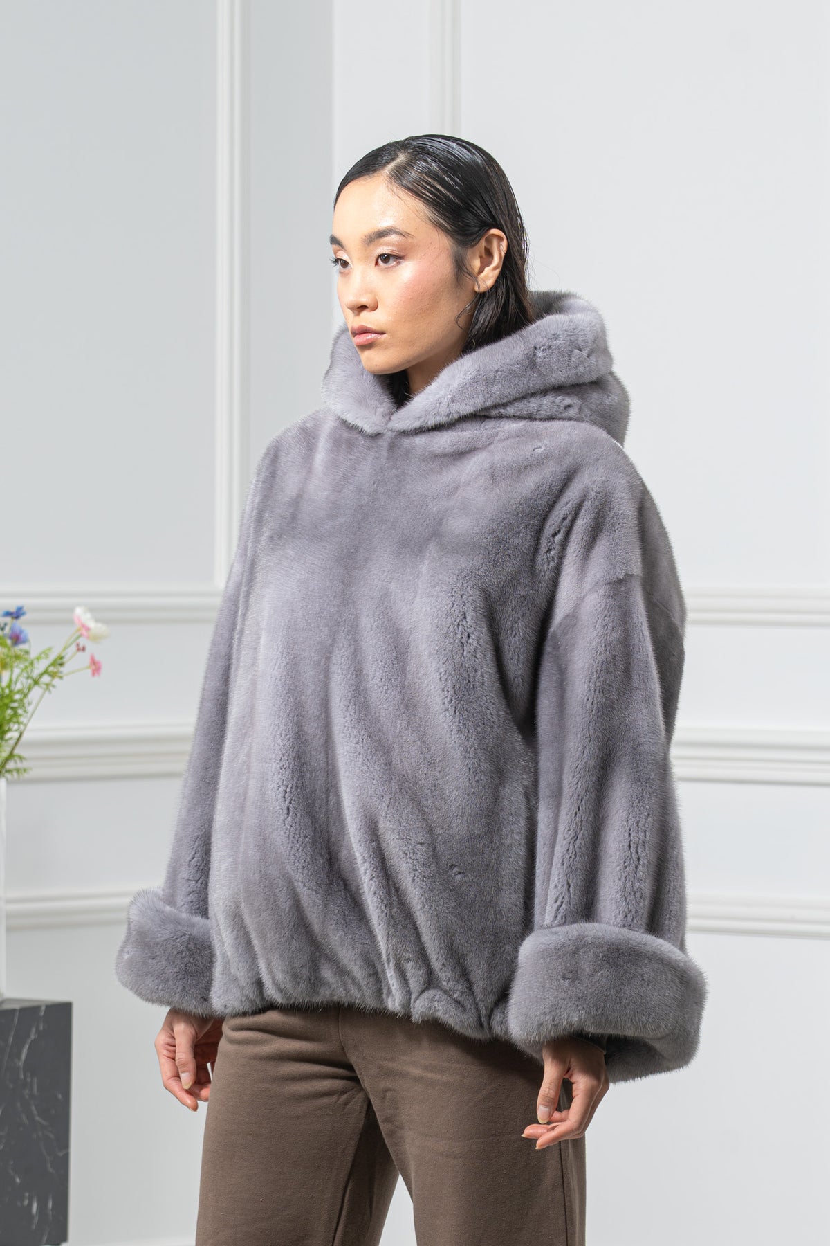 Sapphire Mink Fur Short Jacket With Hood - Women&