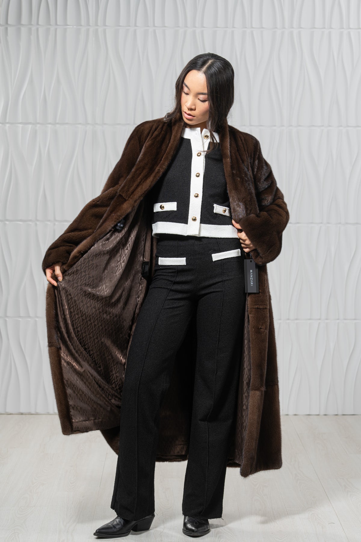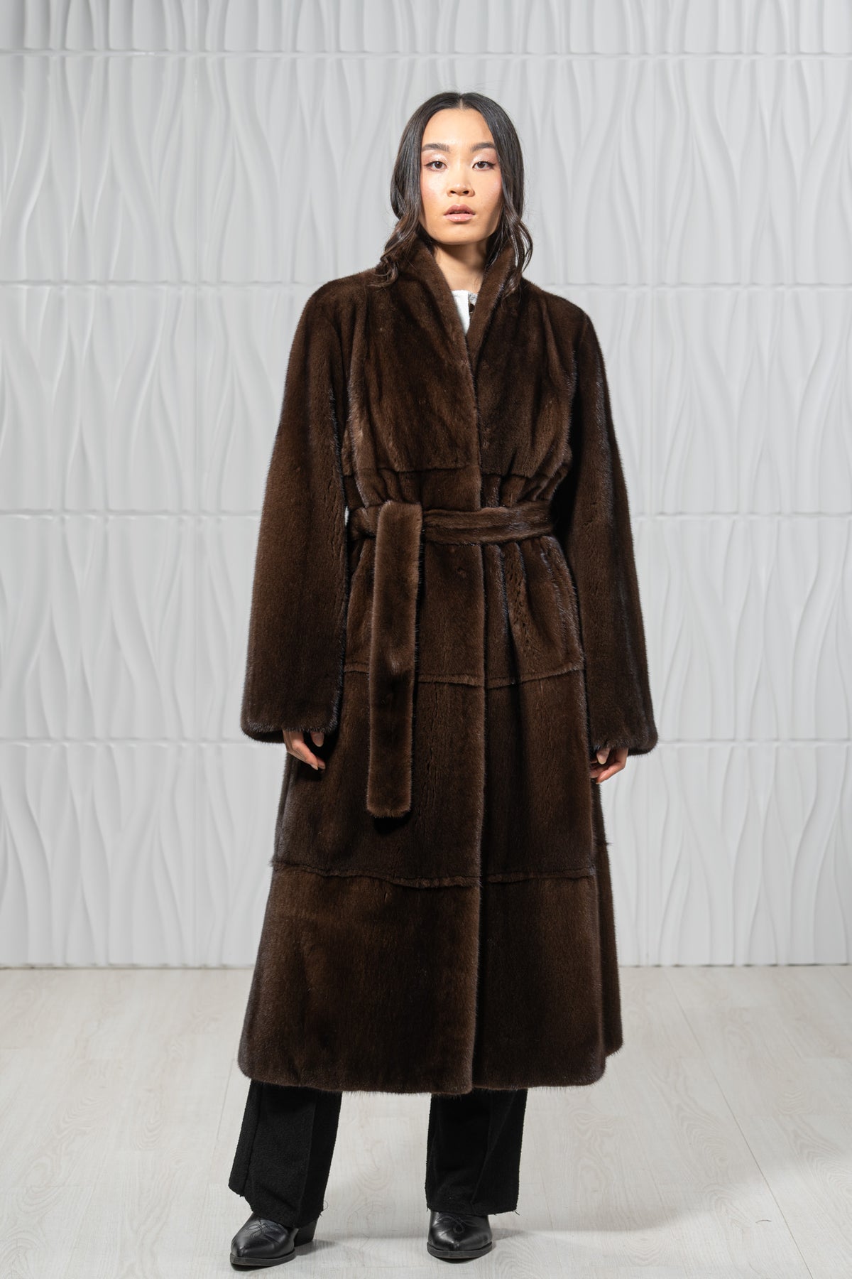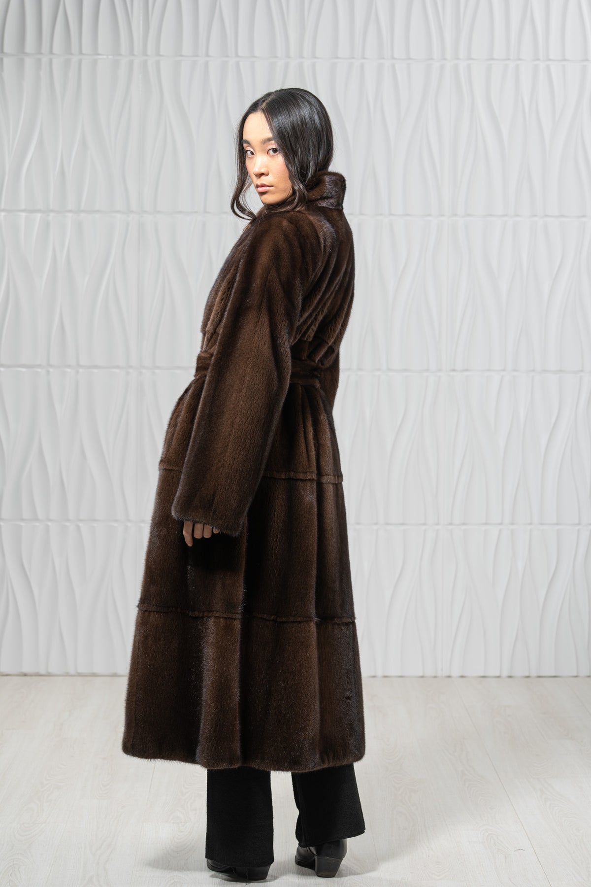Handcrafted in Kastoria, Greece, a region globally celebrated for its masterful fur artistry, this full-length mink coat showcases the superior quality and remarkable softness of premium Velvet Mink fur. The rich "Brown" hue exudes sophisticated glamour, offering a versatile aesthetic that seamlessly transitions from elegant daytime engagements to opulent evening affairs.